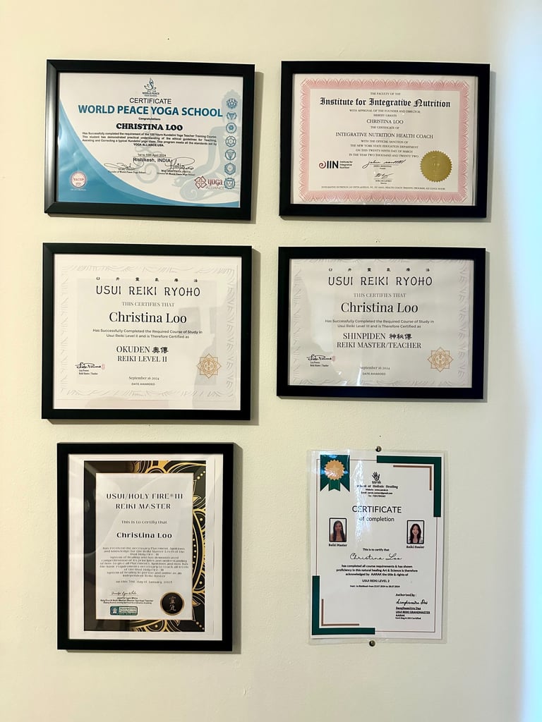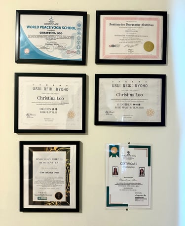 Hi, my name is Christina and I am of Chinese and Japanese descent, born and raised in the Bay Area, California. I have a B.S. in Psychology, am a certified Health Coach, certified Somatic Mind Body Practitioner, and certified Reiki Master.